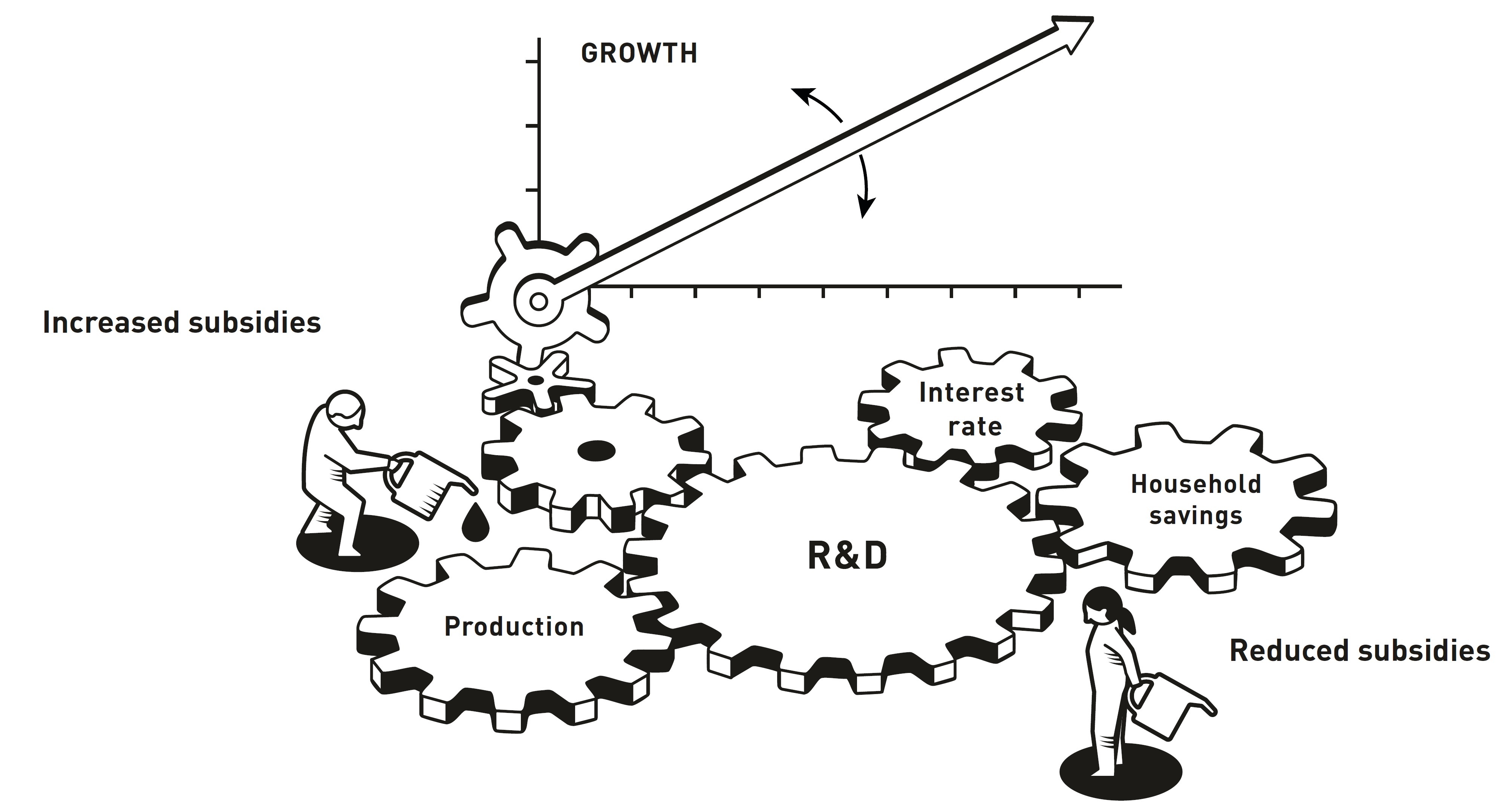 Модель Філіпа Агіона і Пітера Говітта показує, що на інвестиції у дослідження впливають різні сили й потреба у державній підтримці залежить від ринкової кон’юнктури та стадій циклу інновацій. Фото Нобелівський комітет